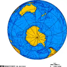 Vahselbugtens placering (hvid prik) ved Antarktis.