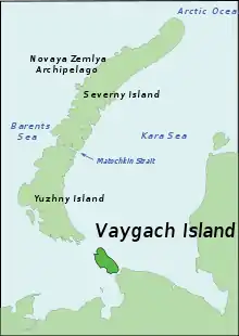 Der er tre bosættelser på øen: Vaygach, Dolgaja Guba og Varnek.