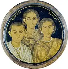 Valentinian (til venstre), med hans søster Justa Grata Honoria (i midten) og deres mor Galla Placidia (Brescia, Museo di Santa Giulia).