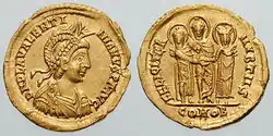Valentinian (til venstre), med hans søster Justa Grata Honoria (i midten) og deres mor Galla Placidia (Brescia, Museo di Santa Giulia).