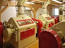 Den endelige findeling af den næsten skalfri melkerne finder sted ved passage mellem glatte stålvalser (oprindeligt porcelænsvalser).