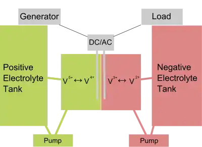 Vanadium-redox-flow-batteriet eller VRB er en redox-flow-celle og blev opfundet af Professor Maria Skyllas-Kazacos ved University of New South Wales i Australien og har en cyklusvirkningsgrad på 75-90%. [1] Ved en 1 molær opløsning har vanadium-redox-flow-cellen en cellespænding på ca. 1,26-1,6V. Etableringsomkostningerne kan være så lave som 150 USD per kWh (årstal?).