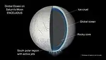 For et koldt, mindre himmellegeme som Enceladus vil der være et ocean af flydende vand imellem en fast overflade af is og et fast lag af klipper i kernen bestående af silikater. For et koldt, større himmellegeme som Ganymedes vil der også være en overflade af is, men vandet i bunden af det flydende hav være under højt tryk og omdannes til is, så det flydende vand vil danne en "vand-sandwich", et hav, der ligger mellem to lag is. En vigtig forskel mellem disse to tilfælde, er, at for de små himmellegemer er havet i direkte kontakt med silikater, som kan give energi og næringsstoffer til simple former for liv.