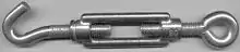 En vantskrue består normalt af to øjebolte (eller krog) med gevind, en skruet ind i hver ende af en lille metalramme, en med venstregevind og den anden med højregevind. Spændingen kan justeres ved at dreje rammen eller røret, hvilket bevirker, at begge øjebolte skrues ind eller ud samtidigt, uden at dreje øjeboltene eller vedhæftede kabler.[1]