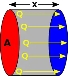 Hvis temperaturen på hver sin side af en skillevæg er forskellig, vil der foregå en varmeledning eller varmestrøm gennem adskillelsen fra den varme til kolde side.