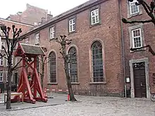 I stedet blev kirken bygget til i 1753-55 i forlængelse af Løngangstræde-fløjen. Kirken er bygget i rokokostil med Johan Cornelius Krieger som arkitekt. Krieger var også mester for selve Vartov-komplekset i barokstil.