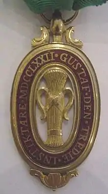 Vasaordenen bæres i et grønt bånd og har fem klasser.