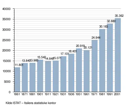 Indbyggertallet i Vasto er mere end tre-doblet siden Italiens samling i 1861.