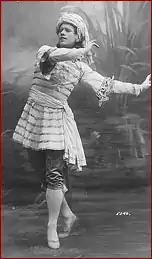 Han var berømt for sin kraftfulde, men samtidig graciøse teknik og var et legendarisk medlem af Djagilevs Ballets Russes sammen med ballerinaen Tamara Karsavina. Hans berømmelse skyldtes også hans evne til at fortolke en rolle med usædvanlig indlevelse, som det kommer til udtryk i hans Petrusjka.