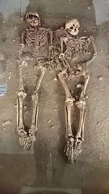 I alt afslørede udgravningerne 17 begravelser med 19 forskellige lig fra spædbørn til 40-50 år gamle. I de fleste grave fandtes spor af okker omkring hoved, bækken og fødder. Tilsyneladende var der ingen kønsforskel på den skik. Derimod var der forskelle i gravudstyret for mænd og kvinder: i mandsgrave fandtes redskaber som hjortetaksøkse, kerneøkse, flintægdolk, pren og flintkniv. I kvindegrave er der smykker, gennemborede dyretænder, især kronhjort, sjældnere vildsvin.[5]