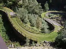 Automobilfærdselen kan tåle stærkere stigninger end vognfærdsel med heste, men den store kørehastighed og nødvendigheden af oversigt over vejen kræver større radier i vejsvingene, jævnere overgang imellem stigninger med modsat retning og i de skarpeste vejsving helst ensidigt fald på kørebanen ind mod kurvecentret, hvorved faren for udglidning af vogne på ydersiden af vejen mindskes.[6]