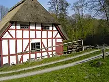 Møllebygningen er opført i egebindingsværk, med halvvalmet stråtækt tag. Møllen var i drift til 1975 og stigbord og malekarm er bevaret; Den fungerer nu som museumsmølle, og var på et frimærke fra 1988 (kr. 7,10).