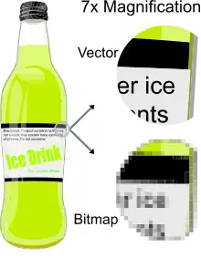 Rastergrafik, pixelgrafik eller bitmap har på grund af sin opbygning ikke samme skalerbarhed. Hver punkt eller pixel har en RGB-, CMYK- eller lignende farvekode.