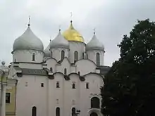 Det fornemste af middelaldermonumenterne er Sofiakatedralen (russisk: Софийский Собор), der blev bygget mellem 1041 og 1050 af Vladimir af Novgorod, som blev ansporet til det af sin far, Jaroslav den Vise. Kirken skulle være et udtryk for Jaroslavs taknemlighed for Novgorods støtte til ham i hans kamp mod Kiev. Dette er den bedst bevarede kirke fra 1000-tallet, og den første som viser de oprindelige karaktertræk af russisk arkitektur med strenge stenmure og fem hjelmlignende kupler. Dette er en videreførelse af centralkirken med kupler i byzantinsk arkitektur. Freskerne i kirken blev malet i 1100-tallet og blev renoveret i 1860'erne. Ikonografien er byzantinsk med bl.a. afbildning af Konstantin den Store og hans mor kejserinde Helena. Katedralens berømte bronzeporte er lavet i Magdeburg i 1156 og skal angivelig være stjålet af novgoroderne fra den daværende svenske hovedstad Sigtuna i 1178.