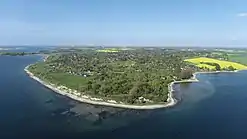 Det gamle campingområde som i dag er lavet til naturområde. I baggrunden ses Vellerup Vig