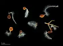 Blomstringen foregår i juli-september. Blomsterne sidder samlet i store, åbne stande, som er samemnsat af flødehvide, regelmæssige blomster. De har fire kronblade og mange, oprette støvdragere. Frugterne er nødder med lange, sølvhvide frøhaler.