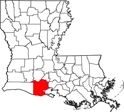 Kort over Louisiana, hvor Vermilion Parish er markeret med rødt