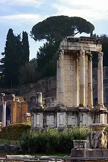 Ruinen af Vesta-templet, som vi ser det i dag, er rester af det tempel, som blev restaureret i 191. En række templer på det samme grundstykke var tidligere nedbrændt; første gang, da gallerne indtog Rom i 390 f.Kr. Derefter i 241 f.Kr., da Caecilius Metellus reddede Palladium-figuren og derved blev blind (men senere mirakuløst fik synet tilbage). I 210 f.Kr. blev templet reddet fra at brænde ned, takket være indsats fra tretten slaver; og i 14 f.Kr. var det så nær ved at brænde, at de hellige genstande blev evakueret. I den store brand under Nero i år 64 brændte Vesta-templet igen ned, men blev snart genopbygget; sandsynligvis i første omgang af Nero selv, og senere i 191 af kejserinde Julia Domna, gift med Septimius Severus.[4]