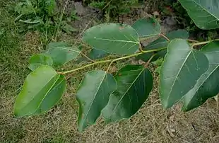 Bladene er store, bredt ægformede eller nærmest sparformede med rundtakket rand og lang spids. Oversiden er blank og mørkegrøn, nærmest lidt læderagtig, mens undersiden er gullig eller hvidlig. Høstfarven er gul. Træet blomstrer i april-maj kort før løvspring. Huntræerne bærer grønne, åbne rakler (hantræernes er røde), som bliver til lange, uldne frugtstande – deraf navnet "cotton-wood" på amerikansk. Frøene mister spireevnen efter få dage.