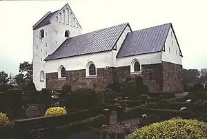 Kor og skib er opført i romansk tid af granitkvadre over hulkantsokkel. Den retkantede norddør og rundbuevinduerne i det nordlige murværk er bevaret. Tårnet er opført omkring 1500 af munkesten og genanvendte kvadre, gavlene har blændingsdekorationer med rødkalket bund.