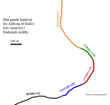 Vejen starter ved Storegade, og bliver til Hobrovej 450 meter henne af gaden.