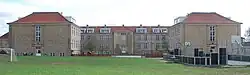 ![]() Hovedbygningen set fra sportspladsen, april 2011. | |
