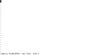 ![]() vi editerende en midlertidig, tom fil. Tilde signalerer linjer som ikke er i filen. | |