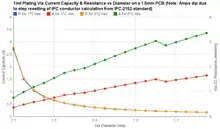 Printplade via strømformåens funktion visende 1 mil plettering via strømformåen & resistans som funktion af diameter i en 1,6mm printplade.
