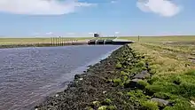 Slusen er bygget i beton og består af tre parallelle kamre, på i alt 20 m bredde, hver med to selvlukkende træporte ud mod havet og 1 stormskodde ind mod land. Øverst på slusen er der et rundt mandskabsrum, hvorfra slusemesteren kan holde øje med eventuelle krisesituationer.