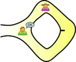 I denne historie kender Peggy et hemmeligt kodeord som åbner en dør i en hule. Hulen er formet som en cirkel, med indgangen i den ene ende og den magiske dør blokerende hulen i den anden. Victor vil gerne købe det hemmelige kodeord af Peggy, men ikke før han er sikker på, at hun rent faktisk kender det. Peggy vil ikke fortælle Victor kodeordet, før hun har modtaget pengene. De laver derfor et system, hvor Peggy kan bevise at hun har kodeordet uden at fortælle det. Først derefter skal Victor skal betale Peggy, hvorefter Peggy så fortæller Victor kodeordet.