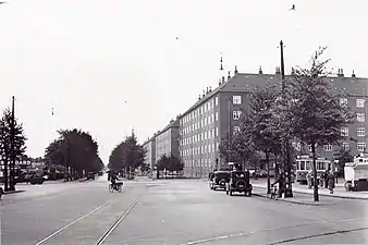 Vigerslev Allé ved Toftegårds Plads med de røde etageejendomme i 1935.