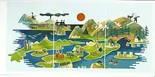 - Norden i søndagstøj, 3-delt vægmaleri, Jaruplund Højskoles store spisesal (1951)