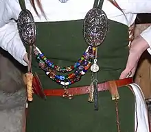 De tre klasser i samfundet var genkendelige ud fra deres udseende. Mænd og kvinder i den højeste samfundsklasse var man velsoigneret med særegne firsurer, og de udtrykte deres velstand og status ved at bære dyrt tøj, ofte af silke, og smykker som brocher, bælter, bæltespænder, halskæder og armringe. Stort set alle deres smykker var fremstillet i specifikke designs, der var unikke i Skandinavien (se Kunst i vikingetiden). Fingeringe blev kun brugt sjældent, og der kendes ingen eksempler på øreringe, da de bliver set som et slavisk fænomen. De fleste karle udviste lignende tendenser og smag som jarlerne, men på en mere afslappet og billig måde.[183][202] Eksempler på fornemme smykker og genstande fra vikingetiden tæller bl.a. jellingebægeret, Odin fra Lejre, revninge-kvinden og tissøringen.[203][204][205]