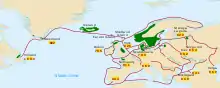 Perioden fra de tidligst kendte vikingetogter i 790'erne til den normanniske erobring af England i 1066 bliver normalt betegnet som vikingetiden i Skandinaviens historie.[34][35] Vikingerne brugte Norskehavet og Østersøen til at finde ruter mod syd. Normannerne afstammer fra vikinger, som havde bosat sig i området, og havde modtaget overherredømmet of Hertugdømmet Normandiet i 900-tallet. Ud fra dette synspunkt kan man sige, at vikingerne fortsatte med at have indflydelse i Nordeuropa i flere hundrede år. Ligeledes havde kong Harold Godwinson, der var den sidste angelsaksiske konge i England, også danske forfædre.[lower-alpha 1] To vikinger satte sig endda på tronen i England med Svend Tveskæg, der sad i 1013-1014 og hans søn Knud den Store, der var konge af England fra 1016-1035.[38][39][40][41][42]