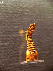 Forgyldt dragehoved fra Irland, fundet i en vikingegrav i Stavanger, Norge (Nationalmuseet, København).