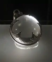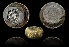 Angelsaksisk vikingemønt-vægt. Brugt til handel med barrer og brudsølv. Den er af bly og kan veje omkring 36 g. Den er dateret til 720-750 og fremstillet i Kent.