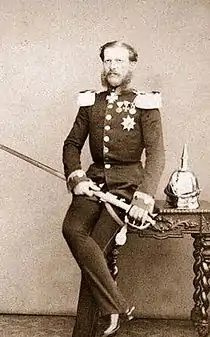 Han meldte sig til den preussiske hær og blev chef for det sjette Kyrassér-regiment. I hofkredse i Berlin var han kendt som spillefugl og gik under tilnavnet Prinz Schnaps. Han giftede sig som 38-årig i Berlin i 1865 med sin 15 år yngre kusine Prinsesse Alexandrine af Preussen.