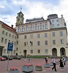 Universitetets hovedbygning ligger på hjørnet af Pilies gatve og Universiteto gatve