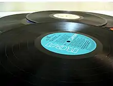 Efter 2. verdenskrig den 21. juni 1948 offentliggjorde Columbia Records (USA) de første vinylplader (PVC), der kørte med 33⅓ omdrejninger pr. minut og med diametre på 10″ og 12″.[10] Den 31. marts 1949 kom RCA Victor (USA) med de første vinylplader, der kørte med 45 omdrejninger pr. minut og en diameter på kun 7″.[11] Både Columbia Records og RCA Victor plader havde tættere riller og var mere holdbare end 78'er lakpladerne.