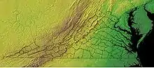 Bugten Chesapeake Bay deler delstaten og en eksklave befinder sig på bugtens østlige side. Bjergene Blue Ridge Mountains ligger mod vest.