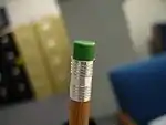 Nogle blyanter er udstyret med et lille viskelæder i enden. Viskelædere kan indeholde vinyl, plast og gummi.