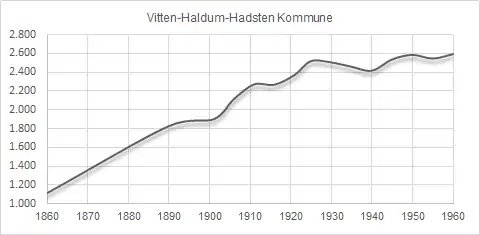 Kommunen blev oprettet ved lov i 1842 af Vitten Sogn og dennes annekser, Haldum og Hadsten sogne.[1] Geografisk ændrede kommunen sig ikke i hele sin levetid. I 1966 indgik kommunen en aftale med kommunerne Galten-Vissing, Ødum-Hadbjerg, Voldum-Rud og Lyngå samt Lerbjerg Sogn fra Laurbjerg-Lerbjerg Kommune om en sammenlægning. I 1967 forlod Haldum og Vitten sogne forhandlingerne og blev til Hinnerup Kommune. Hovedbyen var indtil 1950 Haldum, herefter tog Hinnerup over.[2]