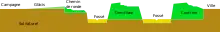 Et voldanlæg kan bestå af mange dele og kan indgå som en fæstningsvold med voldgrav, lynette, fort, bastion, kasemat, berme.