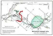 Kort over Mariinskij-kanalen og sluserne i floderne Vytegra og Kovzja.