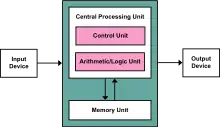 Maskinen består af en CPU, der indeholder en aritmetisk-logisk enhed (ALU) med et antal registre til behandling af data, og en kontrolenhed, der har et instruktionsregister med den binære kode for den aktuelle instruktion og et instruktionspegeregister/programtæller (IP), der peger på den adresse i lageret, der indeholder den næste instruktion. Ud over lageret består maskinen af et baggrundslager og enheder til indlæsning og udlæsning af data (og programmer).