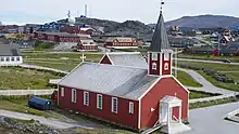 - Af denne grund er den også kendt som "Den røde kirke" i modsætning til byens anden kirke, Hans Egedes Kirke, der er hvid.