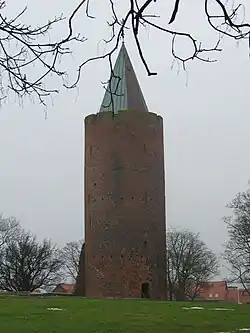 Lige nord for borgen byggedes en ny fornem kirke i teglsten, Skt. Andreaskirken. Den gamle randvold blev nu sløjfet til fordel for en ringmur opført af munkesten. Jorden fra randvolden blev anvendt til at hæve niveauet på borgpladsen inden for muren.