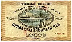 Forsiden af en voucher, udstedt i Rusland 1992.