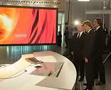 Vladimir Putin i studiet til det russiske nyhedsprogram Vremja (Врeмя)
