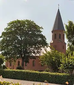 Kirken blev indviet 8. september 1907 og er opført i romansk stil i røde mursten og med skiffertag efter tegning af arkitekt Rudolf Frimodt Clausen. Kirketårnet vender traditionen tro mod vest og er firkantet forneden, ottesidigt foroven og øverst forsynet med et forgyldt spir.